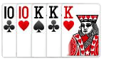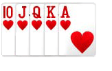 ROYAL FLUSH : kombinasi kartu ini adalah tingkatan tertinggi dalam permainan Poker, angka pada kartu harus berurut dengan angka tinggi, yaitu 10 â™  - J â™  - Q â™  - K â™  - As â™  dengan bunga yang sama (tidak boleh beda), contoh lain : 10 â™¥ - J â™¥ - Q â™¥ - K â™¥ â€“ As â™¥
