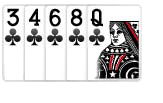 STRAIGHT : kombinasi kartu ini sama dengan STRAIGHT FLUSH, bedanya kalau STRAIGHT tidak memandang bunga, bunganya boleh bebas , misal : 4 â™  - 5♥ - 6♦ - 7 ♣ - 8♦ atau 10♥ - J ♣ - Q â™  - K♦ â€“ As ♣